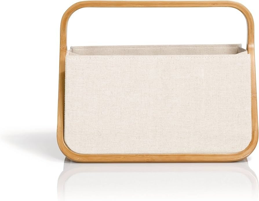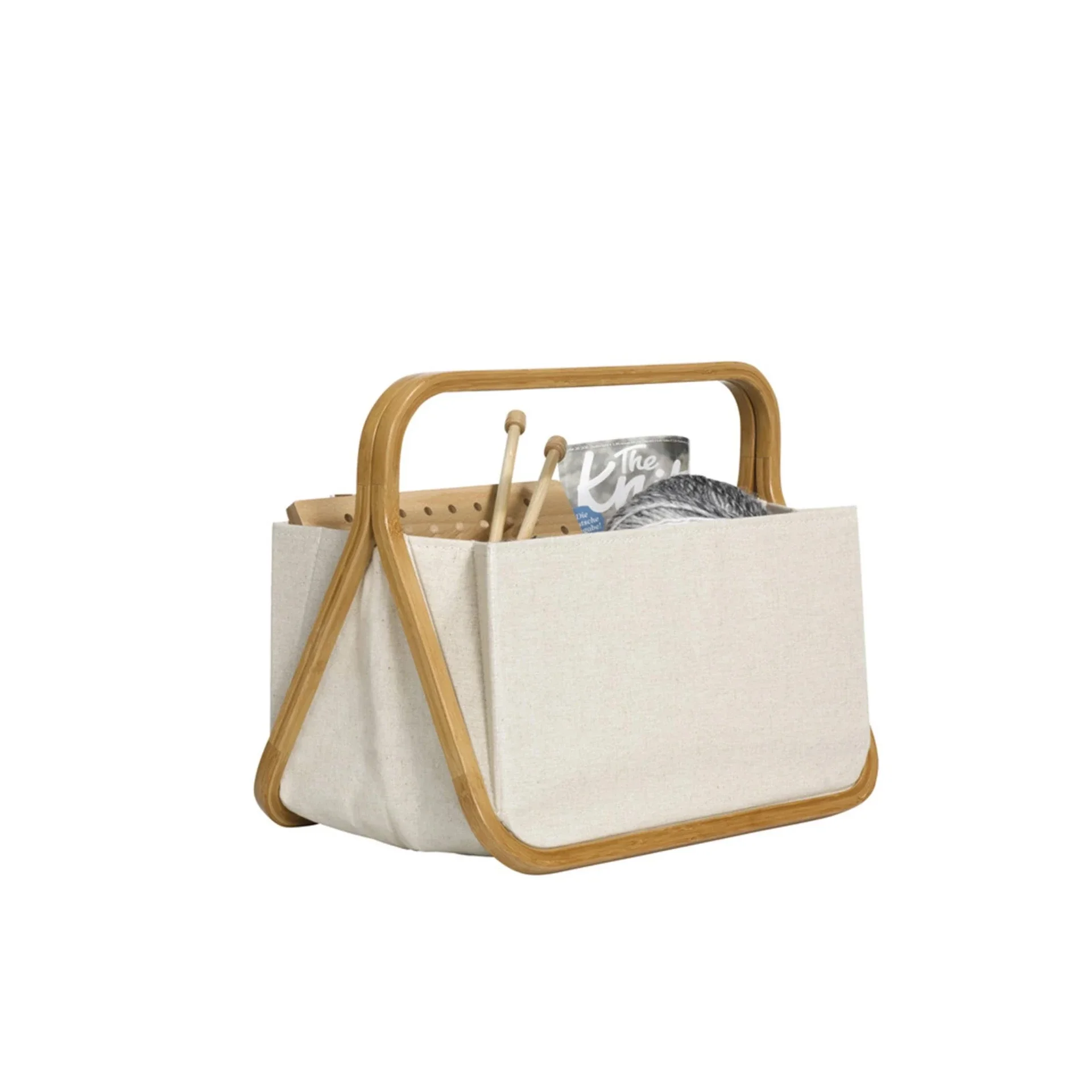 Eenvoudig uitklapbare handwerkmand van trendy canvas en bamboe grepen