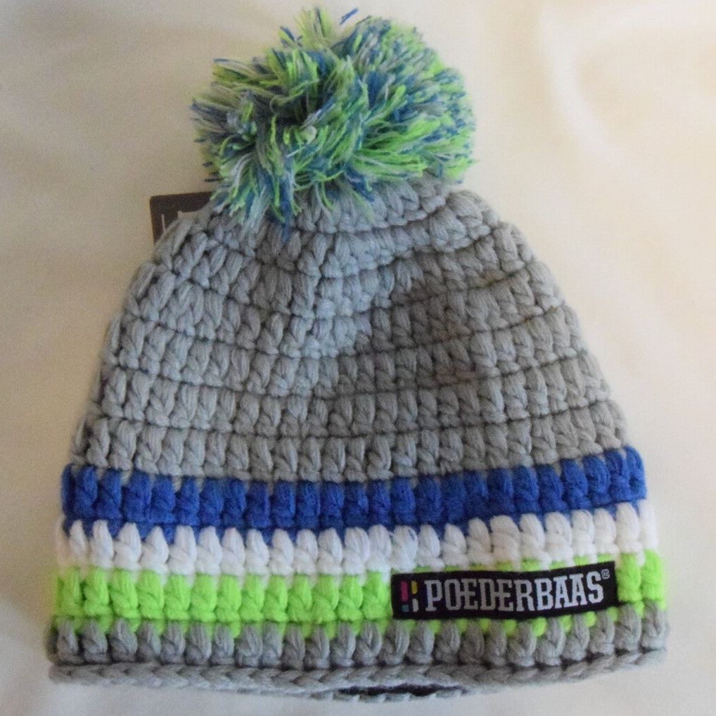Handgehaakte muts van het bekende wintersportmerk Poederbaas!